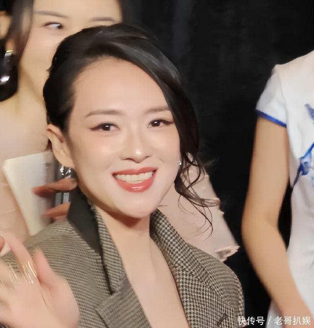 要说更有看点的,还得是这次拿到影后的——章子怡。 她这次豁出去了,穿了件深V西装,事业线都快开到肚脐了。