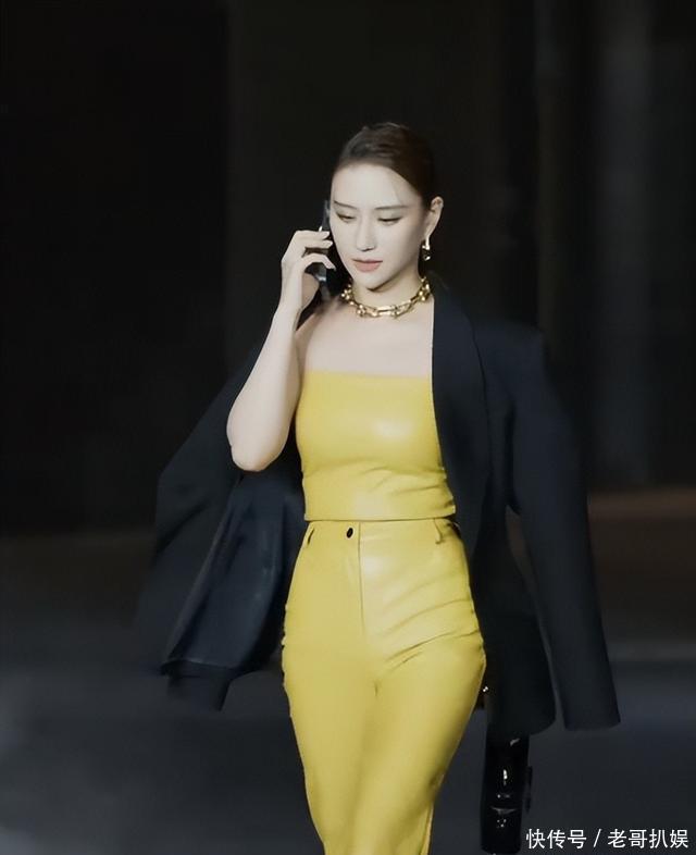 还不如去年的红毯能打。 一身黄色的皮衣套装搭配黑色西装外套妥妥的“霸道总裁”。